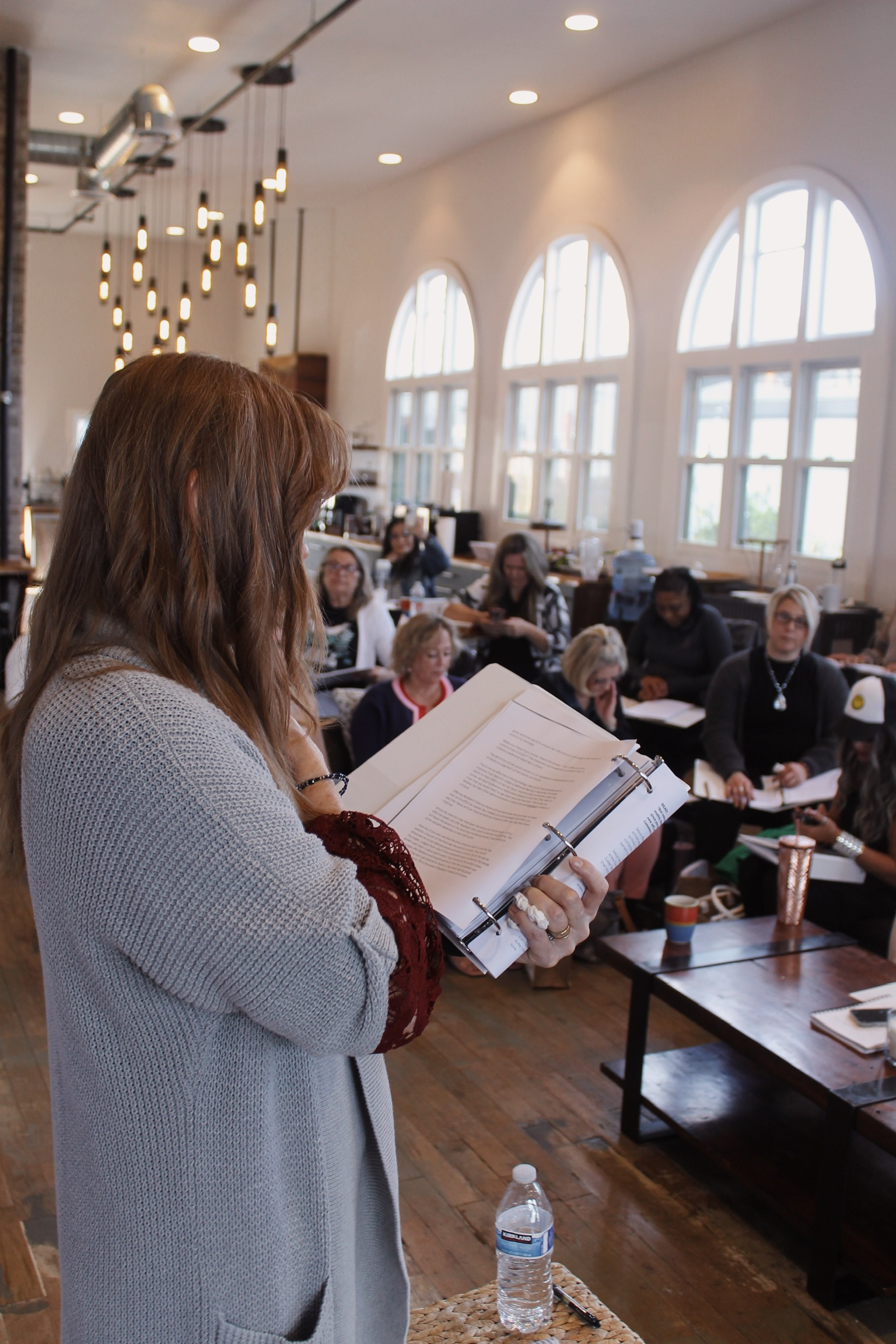 Certified RLC and Master Coach Karen M. speaking at an event about Radiant Leadership Academy